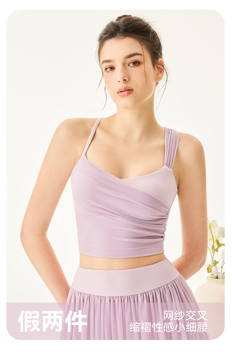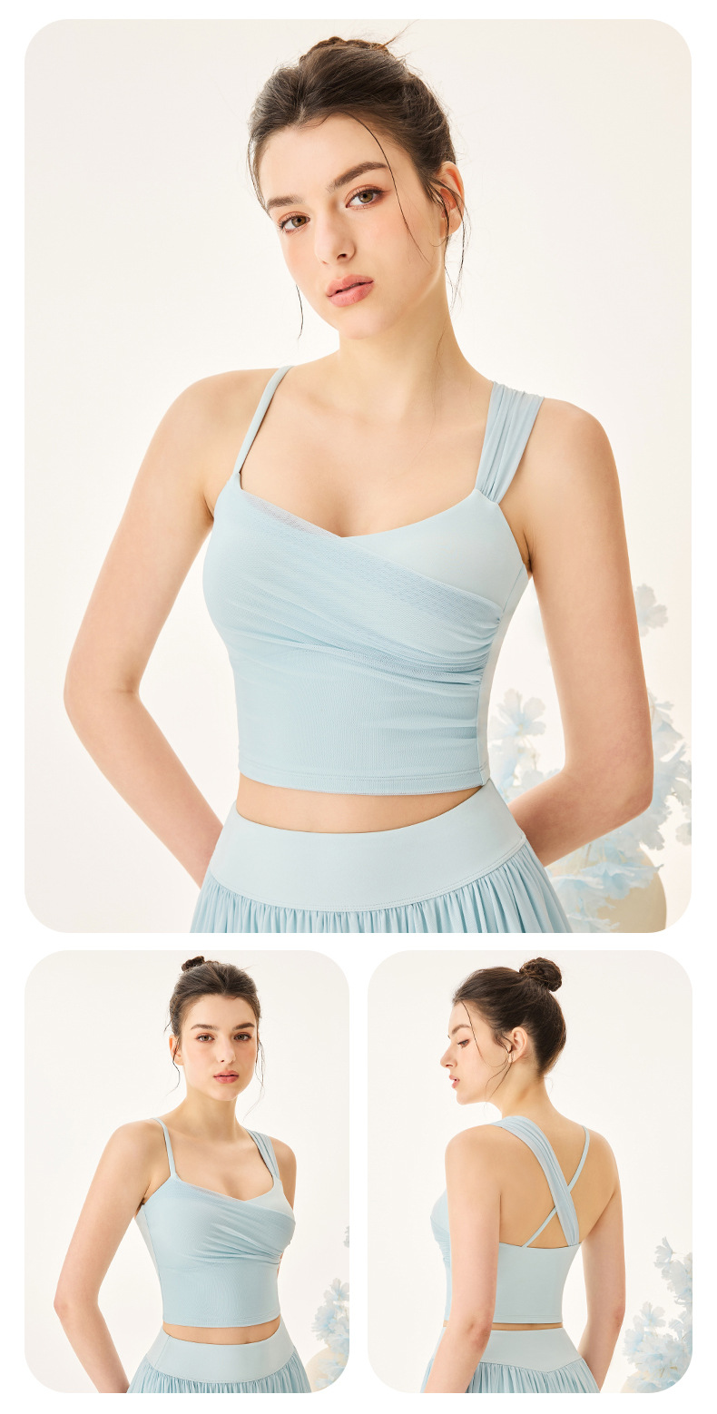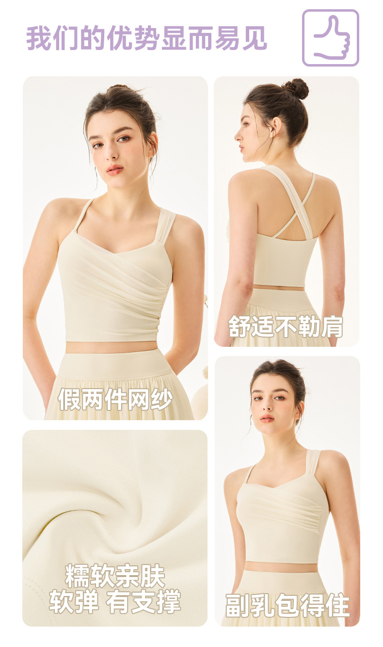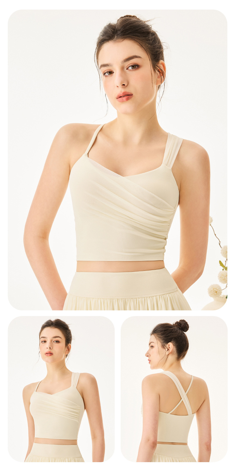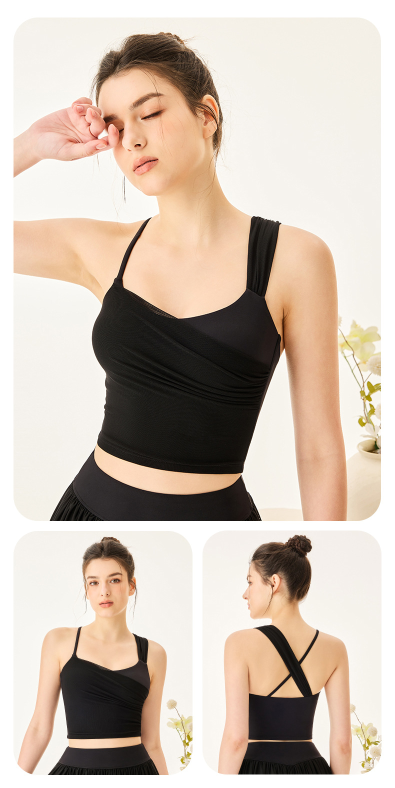 05/2025 Summer new sexy yoga vest fitness underwear high elastic with chest pad sports suspender top mesh style