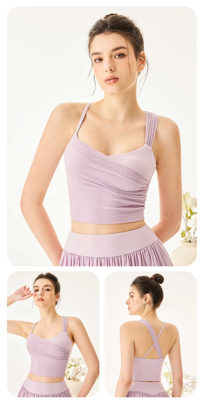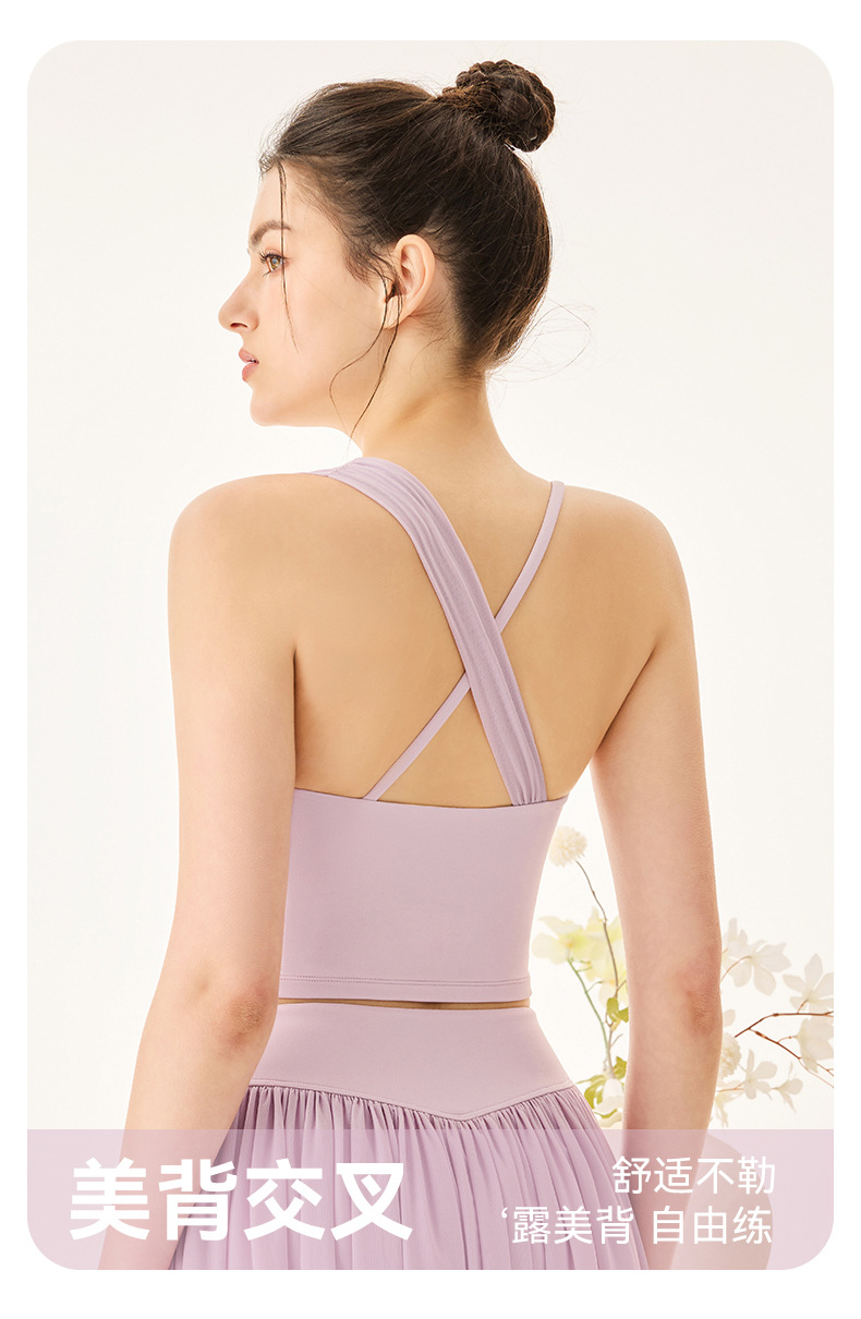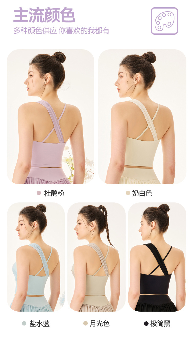 03/2025 Summer Yoga vest top Women with breast pad Beautiful back halter vest no underwire push-up bra