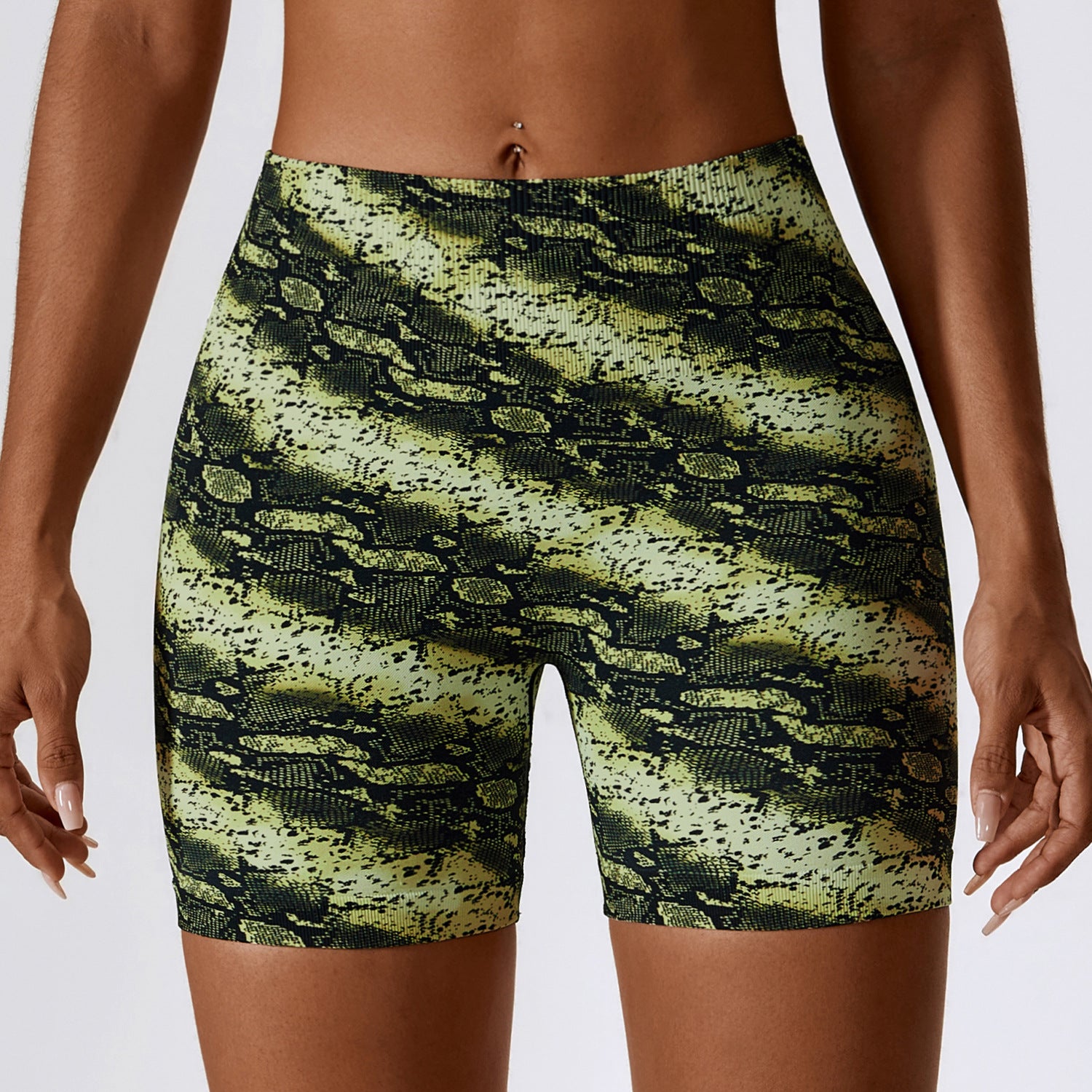 digital printing seamless yoga shorts belly control fitness pants women's hip-lifting high-waist sports shorts 7346