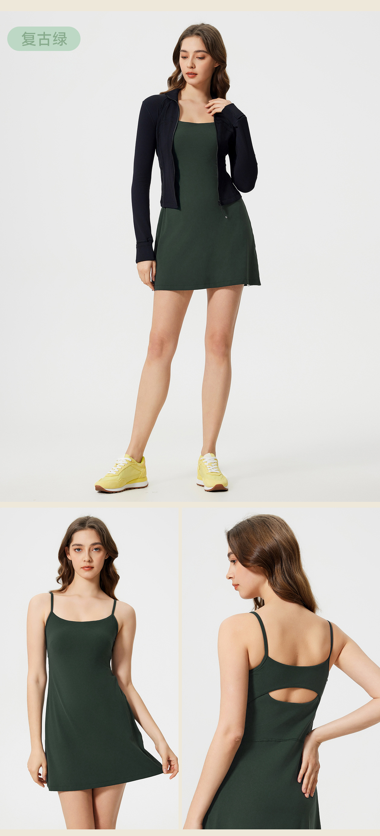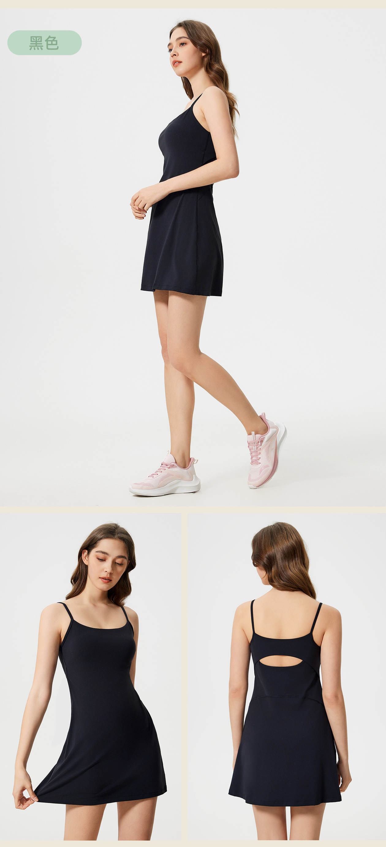 01/2025 Spring/summer sports strap dress Female slimming anti-shine fitness tennis dress D25013 with chest pad