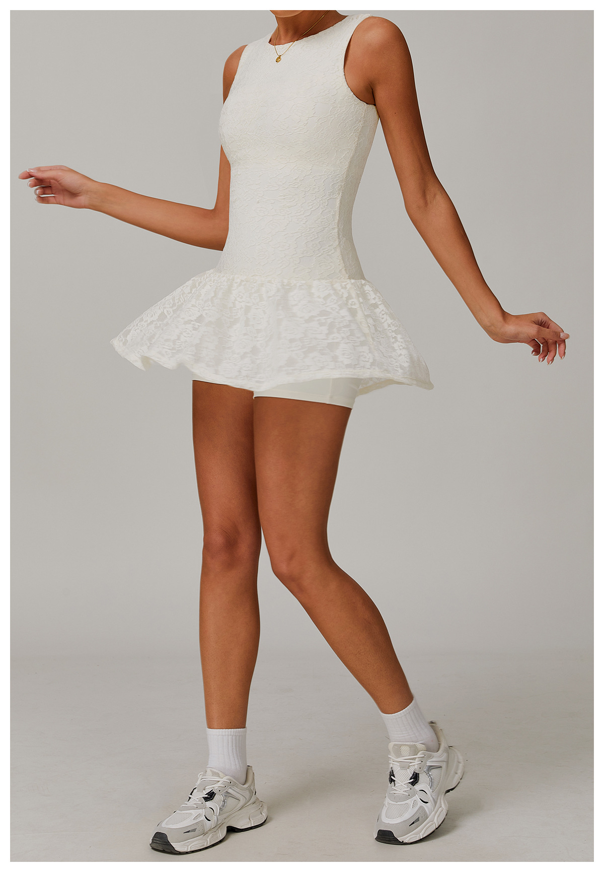 04/2025 Lace nude dress with mesh fabric, breathable zipper, sports, running and anti-exposure dress 9187