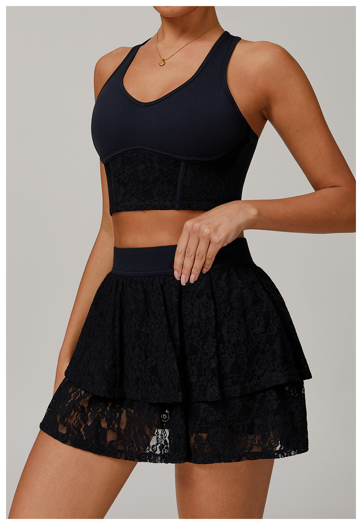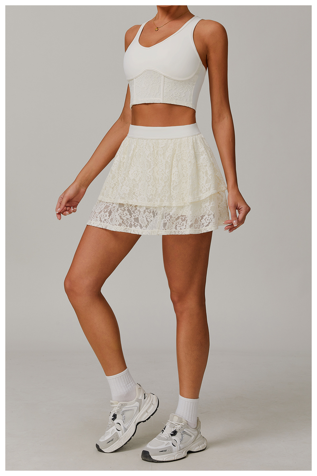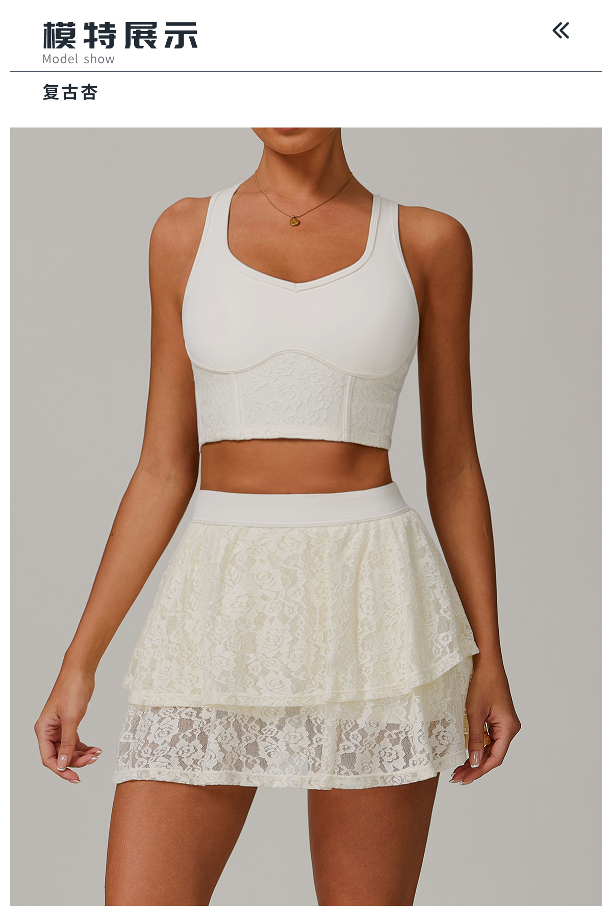 04/2025 Lace Nude Yoga Set, mesh breathable Running anti-glare tennis skirt sportswear Set 9187