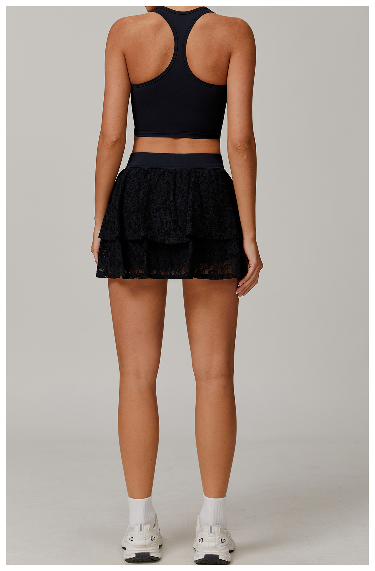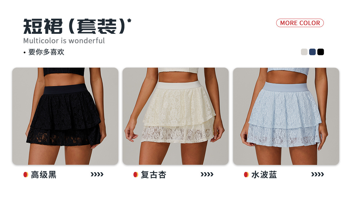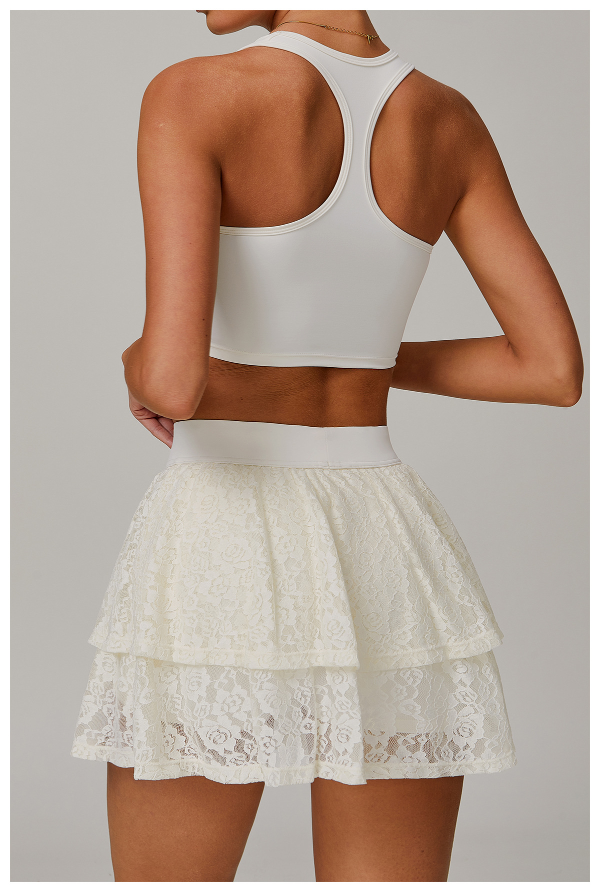 04/2025 Lace Nude Yoga Set, mesh breathable Running anti-glare tennis skirt sportswear Set 9187