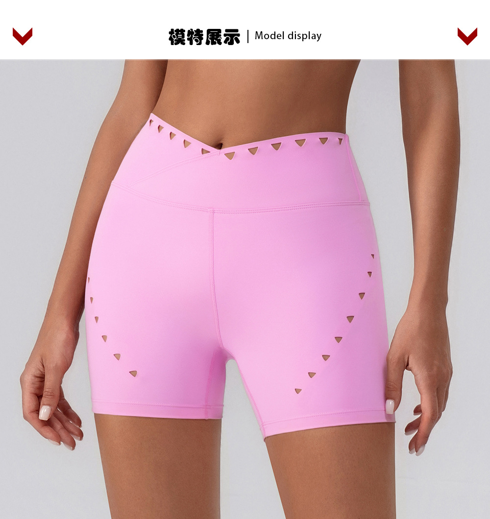 04/2025 Summer hollowed-out waist-shaping yoga pants, paired with running and fitness shorts to lift the hips, outdoor women's three-point shorts